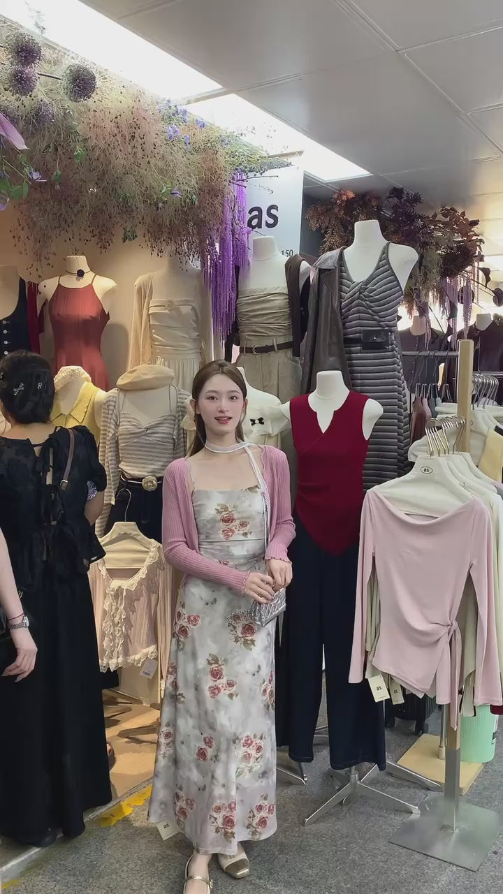 网纱微弹力!水墨玫瑰fafa 度假美裙裙连衣裙